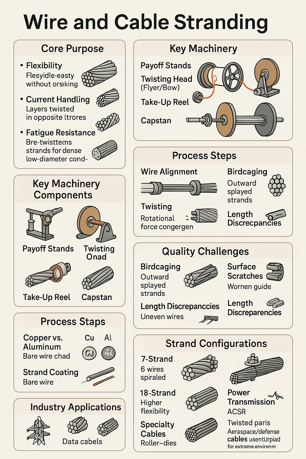 ワイヤーとケーブルのより線 複数のワイヤまたはより線を束ねて単一の導体にする製造プロセスです。