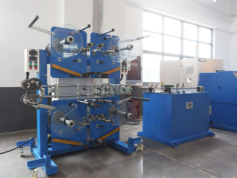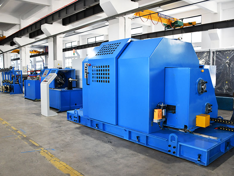 スピードディファレンシャルテイクアップタイプカンチレバーシングルツイスティングマシン(Capstanプーリーなし)には、透過片持ちのカンチレバーと伝送シャフトと微分を介したテイクアップの間に機械的なトラシミッションピボットがあります。ひねりのあるカンチレバーモーターは、ストラン状のカンチレバーとディファレンシャルを駆動して、一定の速度で同期して回転し、最初の一定速度を微分に伝達します。テイクアップエンドのモーターは、2番目の変数速度を変数速度で微分に送信します。最初の一定速度と2番目の変数速度は、3番目の変数速度に合成され、テイクアップスピンドルを駆動してワイヤーを回転させて取り上げます。回転速度の差は、ストランディングカンチレバーの一定の回転速度と、テイクアップスピンドルの可変回転速度との間に形成されます。回転速度の差比は、ストランディングピッチ設定に依存します。ねじれたワイヤーは、速度の違いのためにスプールに巻き込まれます。ワイヤーがスプールに空からフルに蓄積すると、直径が徐々に増加します。制御システムは、テイクアップスピンドルモーターの2番目の変数速度を自動的に調整し、差動は3番目の変数回転速度に自動的にテイクアップスピンドルに移動します。これは、ツイストワイヤの生産が一定のライン速度で維持される方法です。このマシンには、ペイオフラック、中央回転テーピングマシン、縦方向のテーピングマシンなど、さまざまな種類の補助装置を装備して、ケーブルに25mm以内の外径のさまざまなワイヤーのねじれを実現できます。生産効率が高く、断層が低く、高コストのパフォーマンスがあります。