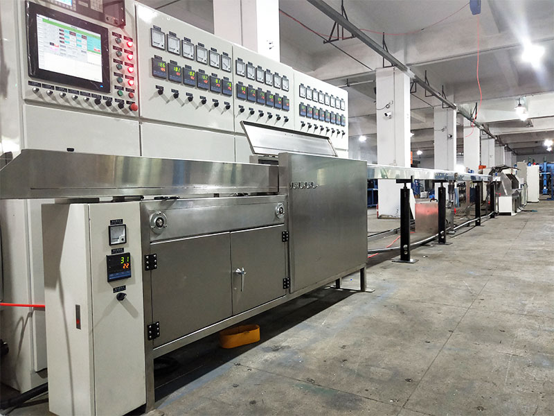 押出機の頭を中心軸として取ると、ペイオフからのすべての部分が線形分布されます。標準の押出ラインの中心高さは1メートル、合計24〜28メートルの長さです |