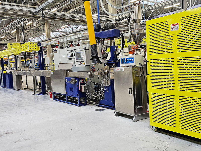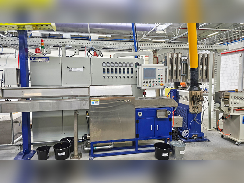 押出機の頭を中心軸として取ると、ペイオフからのすべての部分が線形分布されます。標準の押出ラインの中心高さは1メートルで、全長20〜25メートルの |
